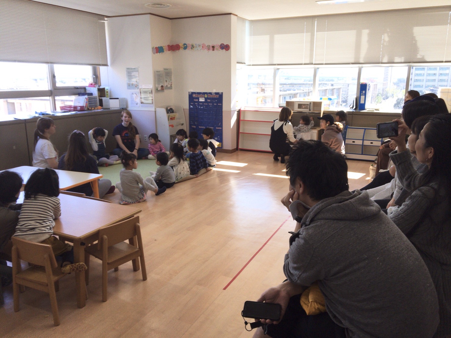 Little StarとSkyクラスの間のこのクラスは、レベル分けをしているので、なかなか一緒にレッスンをするということはないのですが、パパやママが見てくれているおかげか、どの子どももいつも以上に張り切っていました!