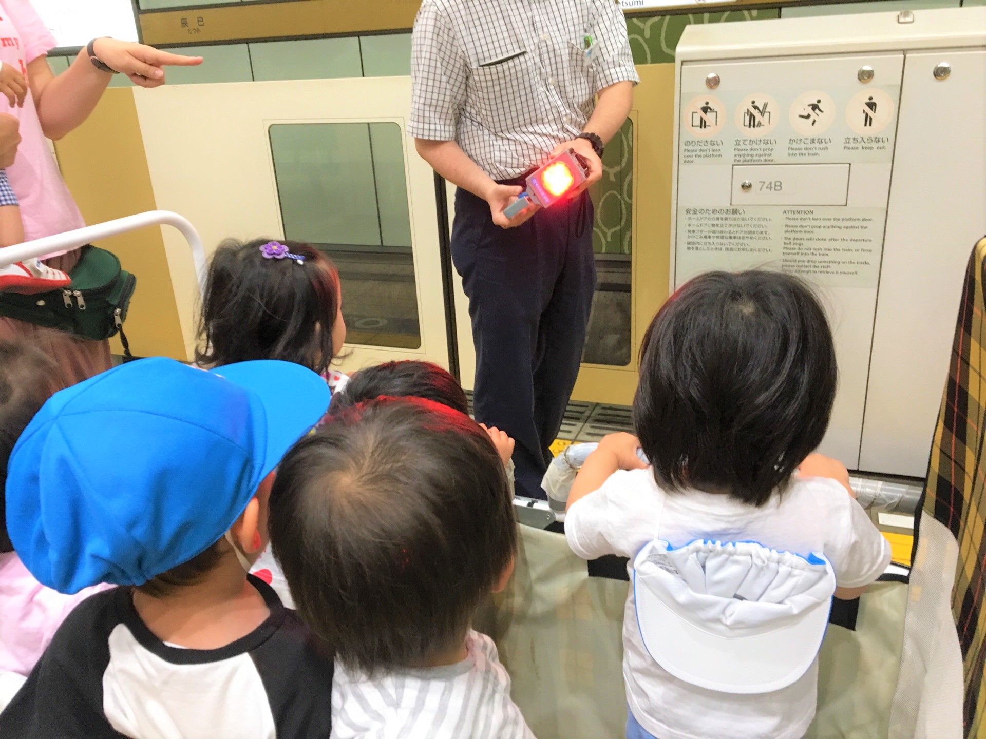 駅員さんが目の前でマイクでアナウンスをしてくれたり、電車に指示を与えるライトも見せてくれました!